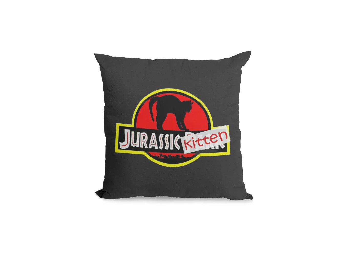 Jurassic kitten black pillowcase